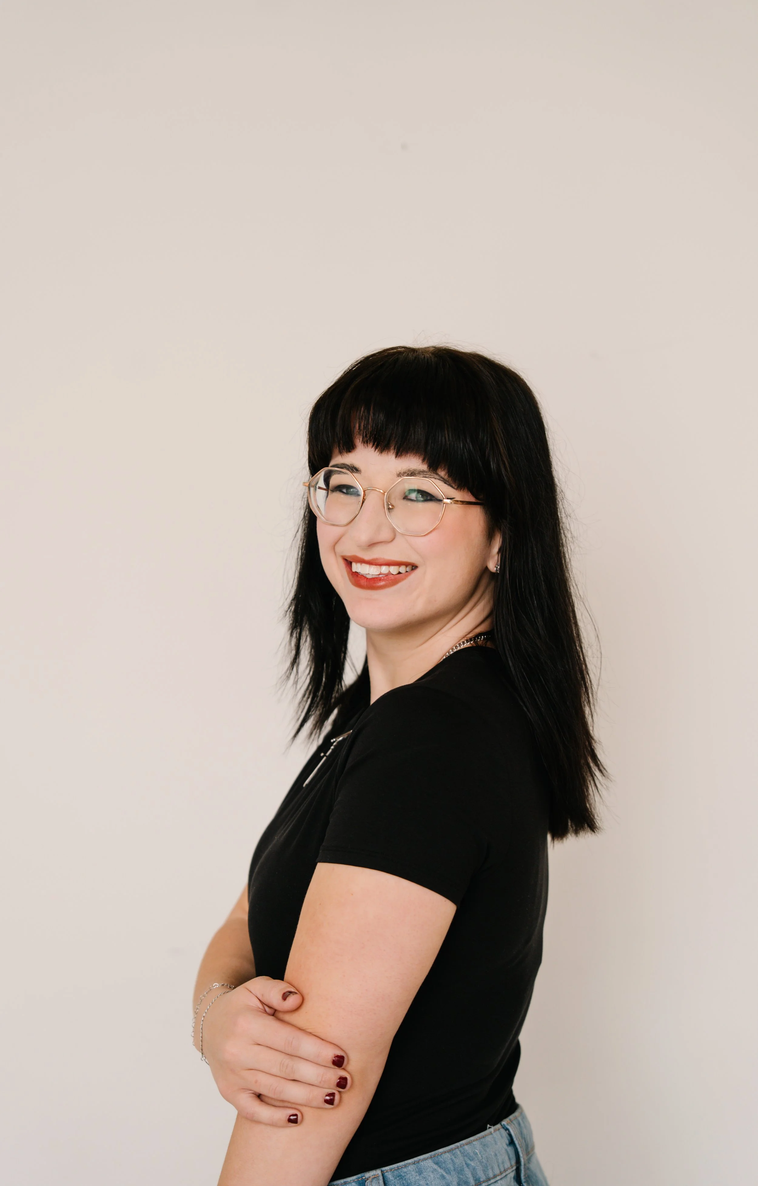 The bright, creamy tones created a stunning contrast to her edgy vibe, making her LinkedIn-ready while still keeping her personality intact.